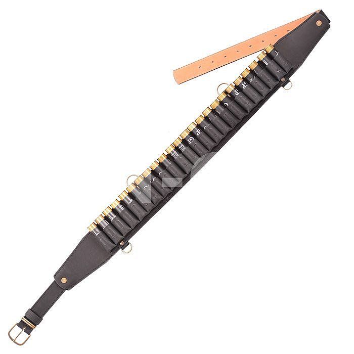 Изготовлен в традиционной форме из натуральной кожи. Патронташ надежно держит 24 патрона в лузах.